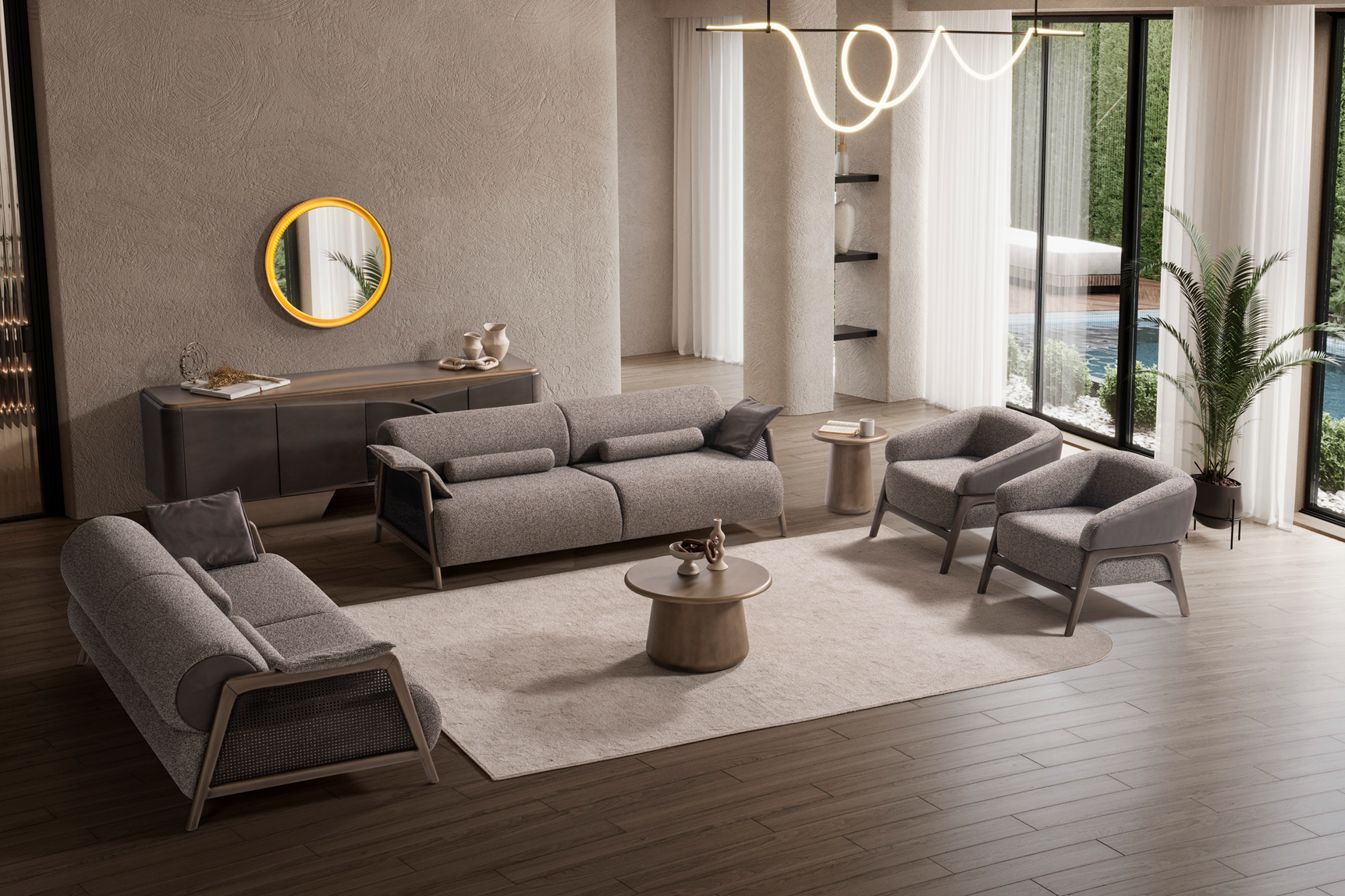 Enriched with modern details, the Icon Sofa Set is designed to bring more joy to your everyday life. It combines comfort, simplicity, and prestige, offering a stylish seating experience that seamlessly fits into any interior.