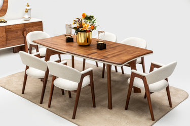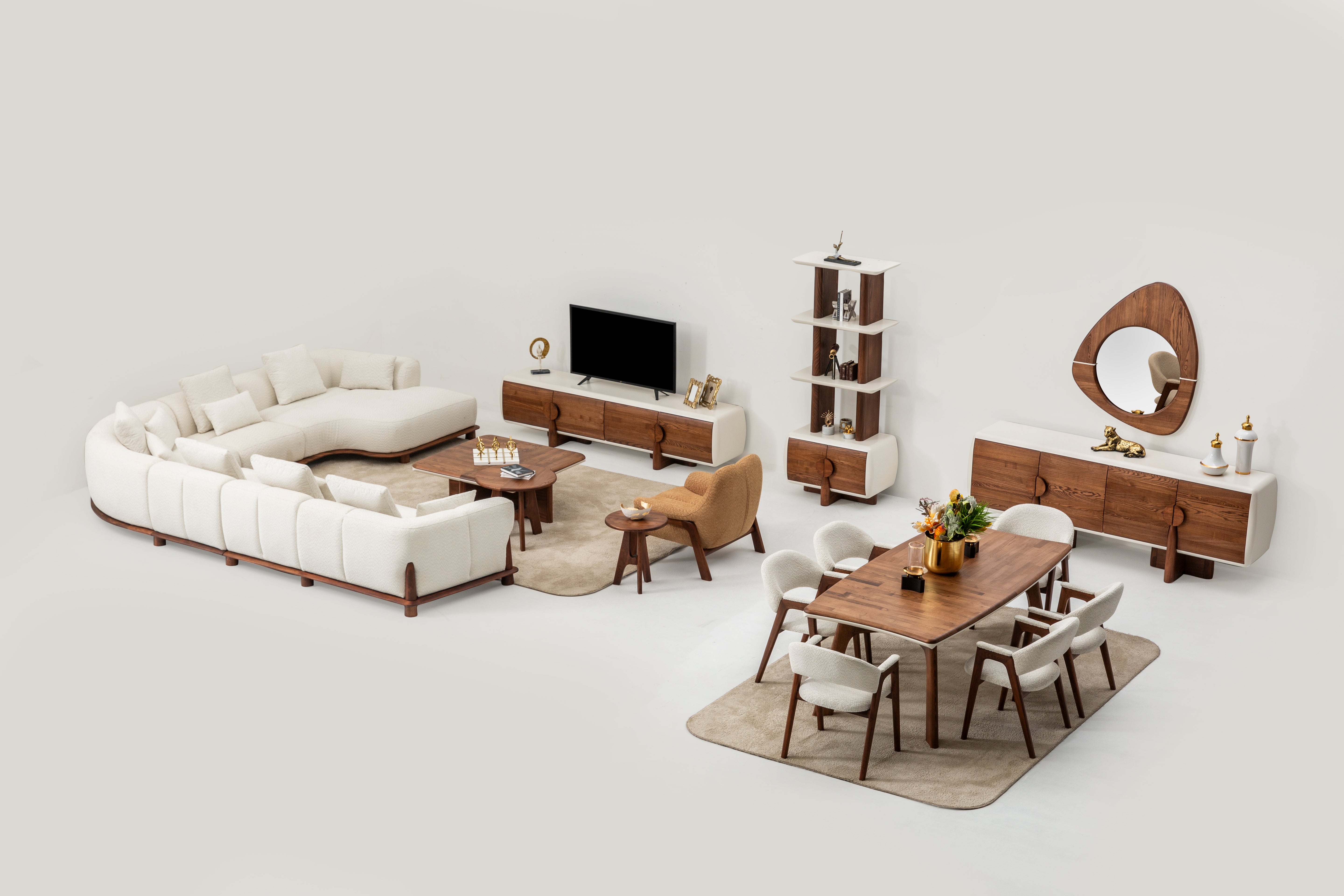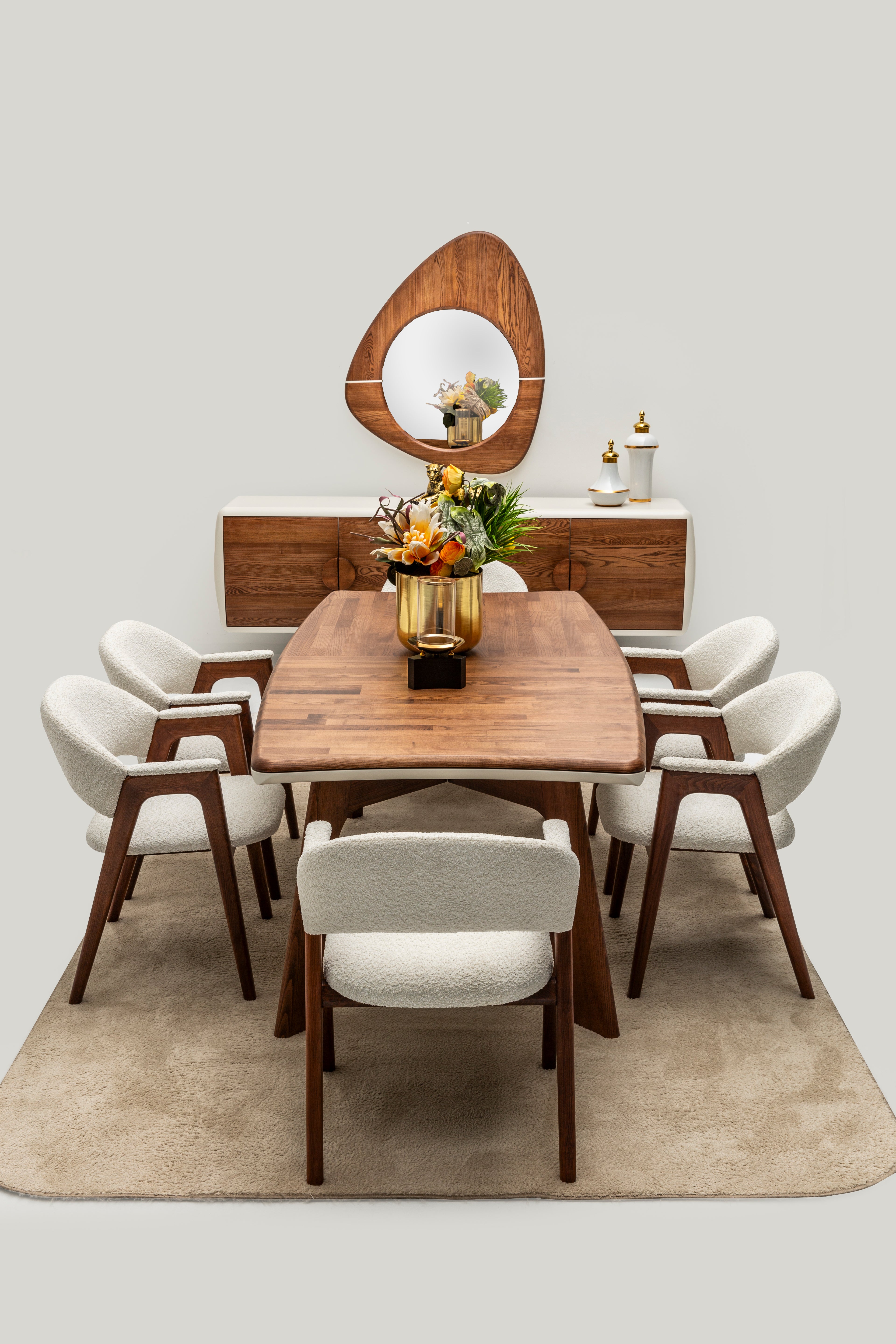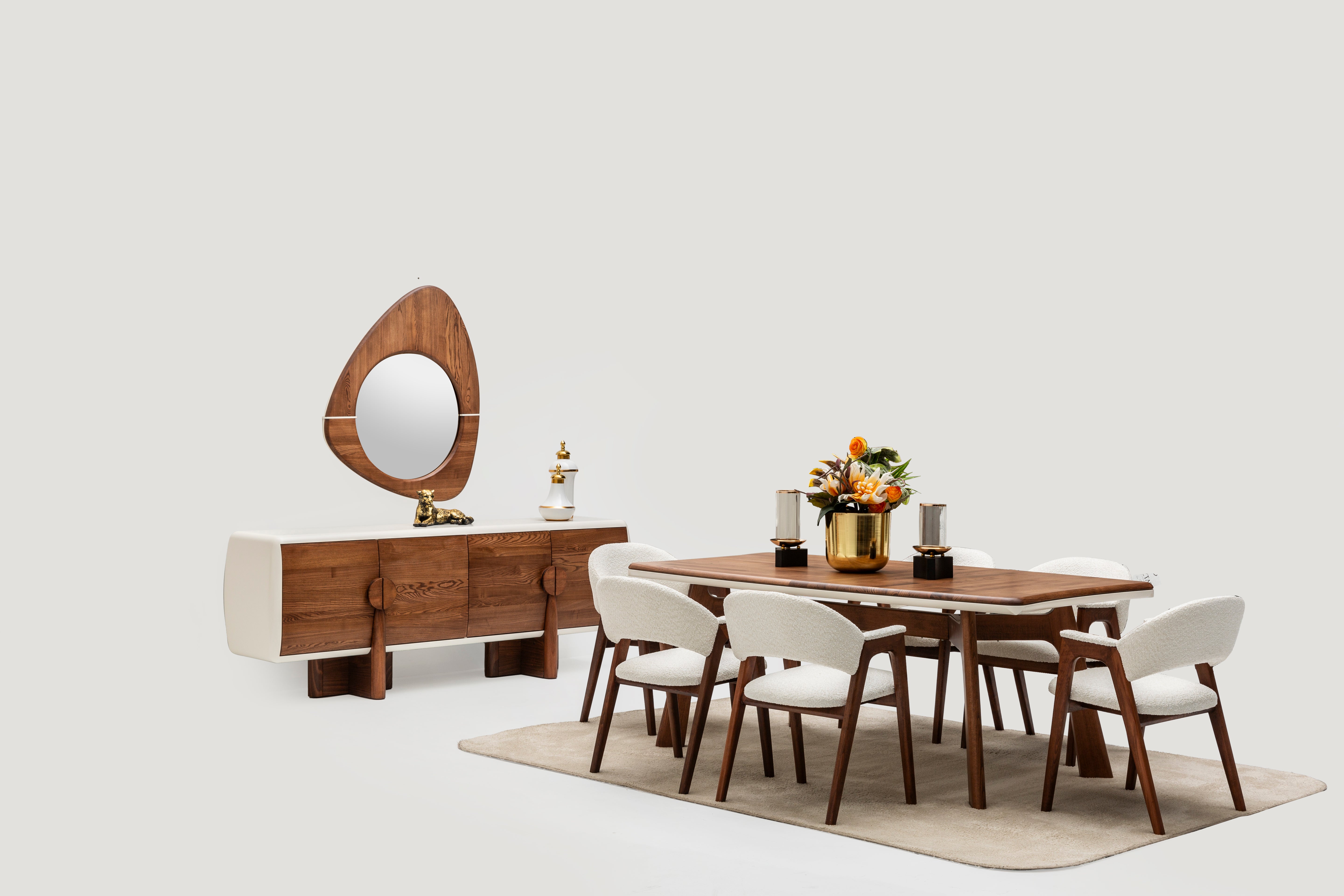 The Corvette Dining Room collection is where timeless elegance meets modern sophistication. With its natural wood textures, sculptural lines, and warm tones, this set transforms any dining space into a refined and welcoming atmosphere. From cozy family dinners to elegant gatherings, Corvette is designed to impress.