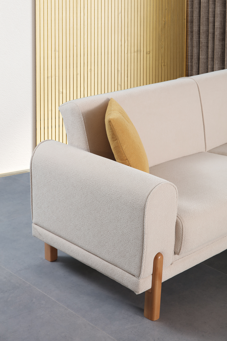 The Porto 3-Seater Sofa blends contemporary comfort with the timeless warmth of wooden details. Its spacious design and supportive cushions make it ideal for everyday relaxation, while the subtle curves and soft upholstery elevate the elegance of any living room.