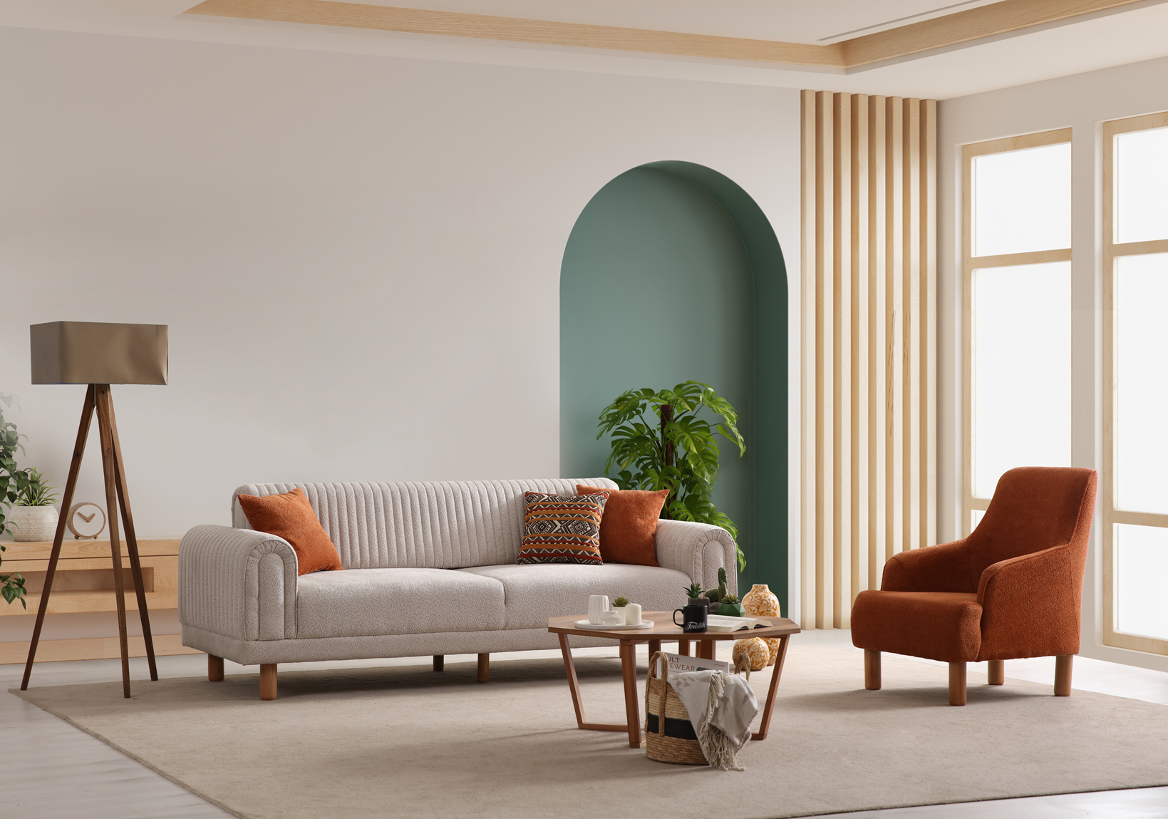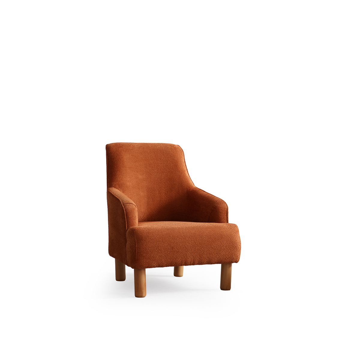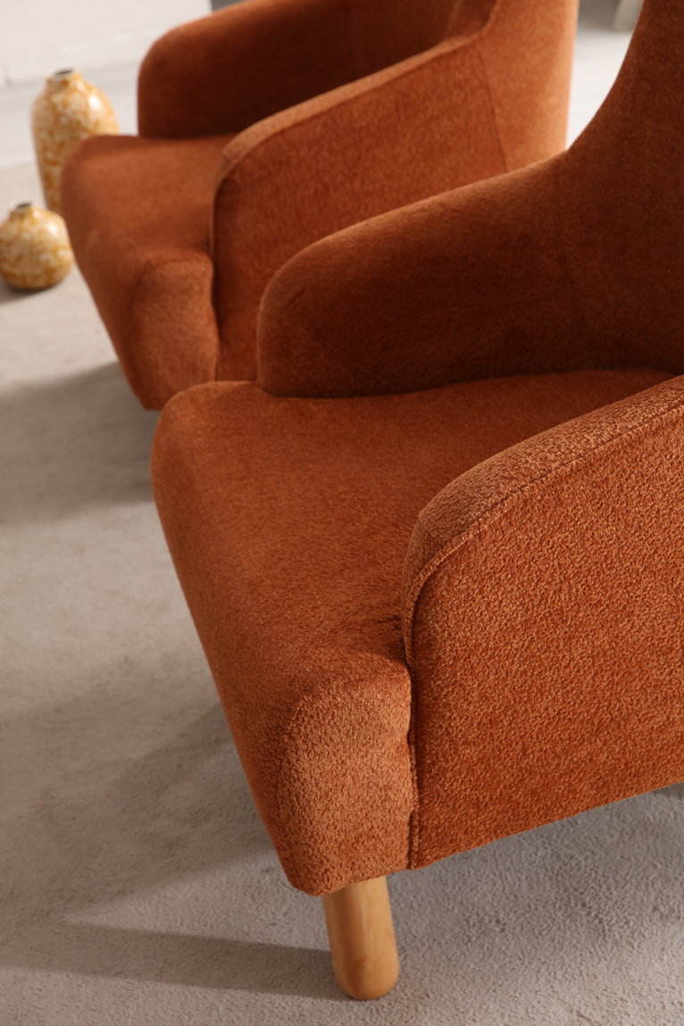 The TOKYO Armchair combines timeless elegance with exceptional comfort, making it an ideal addition to any modern living space. Upholstered in a rich burnt orange fabric, it creates a warm and inviting atmosphere. With its smooth curves, supportive backrest, and natural wooden legs, this armchair offers a cozy spot for relaxation while complementing the overall aesthetic of the TOKYO collection.