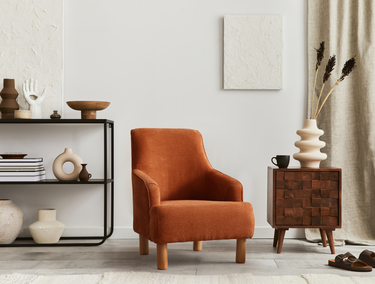 • Upholstered in Burnt Orange for a bold yet refined touch